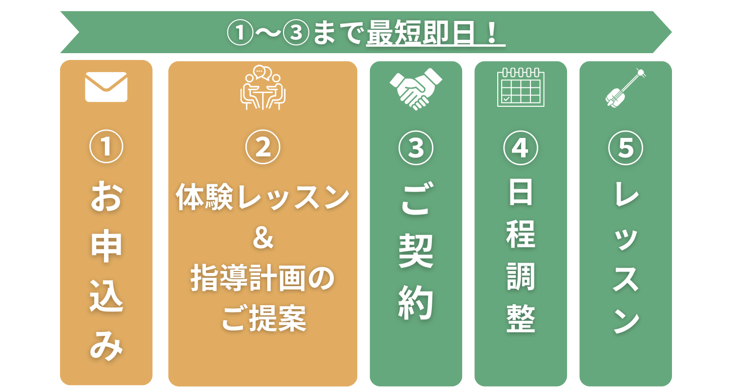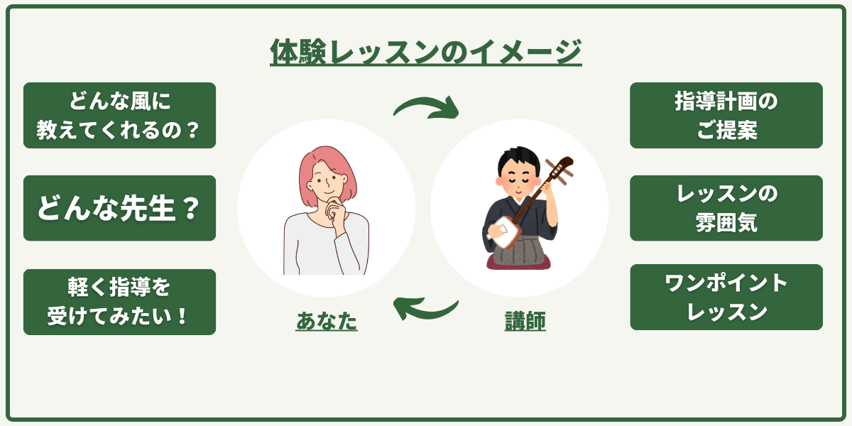 上達には講師との相性が重要ですので、体験後に十分ご納得頂いた上で、レッスンをご成約頂けますと幸いです。